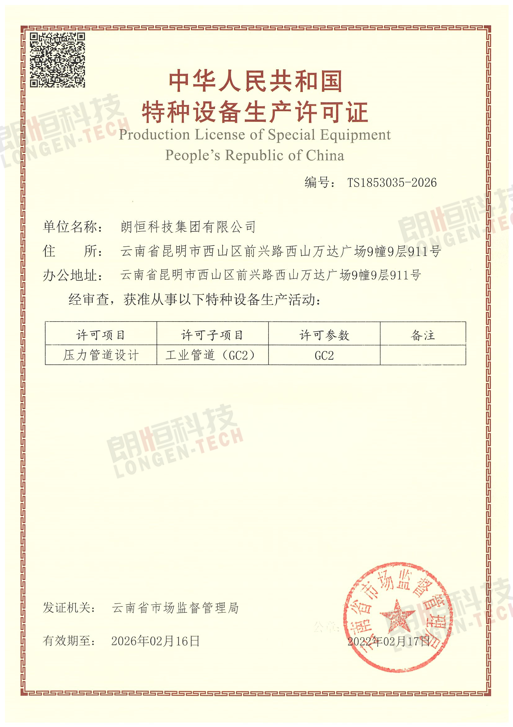 GC2管道证书(设计)